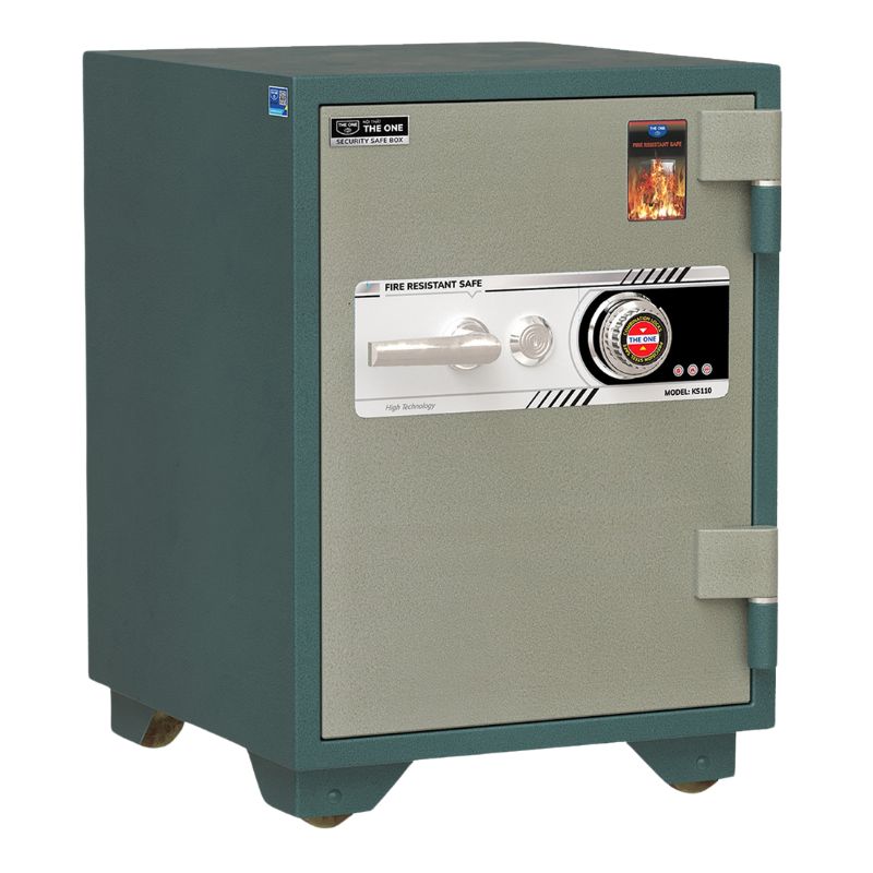 Mẫu két sắt KS110K1C1P này được trang bị hệ thống bảo vệ, tường thành vững chắc được coi là đa tầng – bao gồm khóa chìa và khóa bảo mật. Nó cung cấp độ an toàn tuyệt đối cho tài sản bên trong. Đặc biệt là người dùng có thể tự do thay đổi mật khẩu dễ dàng để đảm bảo kẻ gian khó lòng phát hiện. Kết hợp với trọng lượng 110kg nên két không chỉ chống đột nhập mà còn hạn chế nguy cơ bị di chuyển bất hợp pháp. Kích thước ngoài W481 x D558 x H677 mm đảm bảo sự gọn gàng, phù hợp với nhiều không gian.
