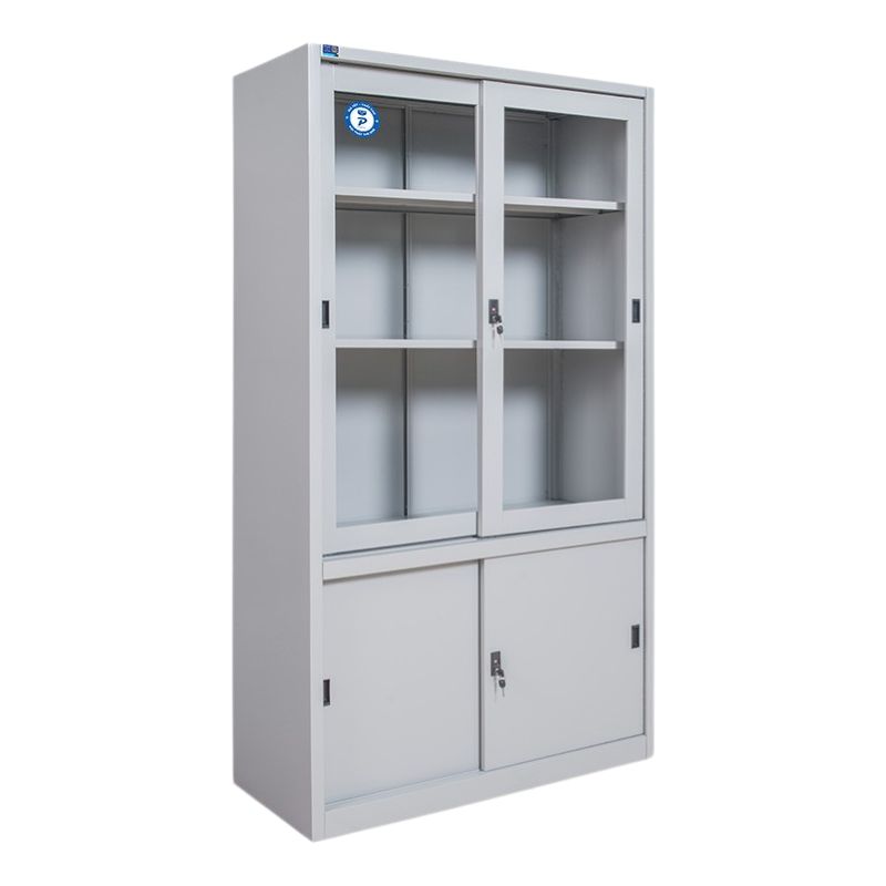 Bên cạnh đó, tủ được thiết kế thông minh với kích thước W1000 x D450 x H1830 (mm), tối ưu không gian lưu trữ mà không chiếm quá nhiều diện tích. Khoang kính phía trên kích thước 1017 x 400 x 3 (mm) cung cấp khả năng hiển thị tài liệu rõ ràng, đồng thời hạn chế bụi bẩn. Hai cánh sắt lùa phía dưới giúp tủ trở nên linh hoạt, tiện lợi trong việc sử dụng hàng ngày mà không ảnh hưởng đến không gian xung quanh.